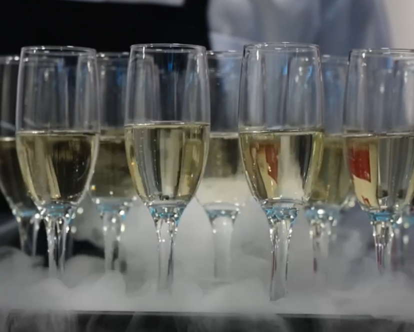 Szárazjeges pezsgős koccintás